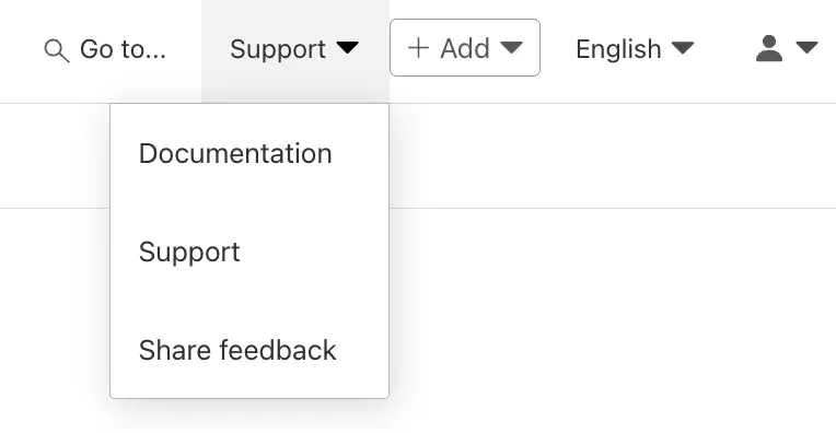 2. In the upper right corner of the Cloudflare dashboard, select Support > Support or visit https://dash.cloudflare.com/?to=/:account/support ↗.